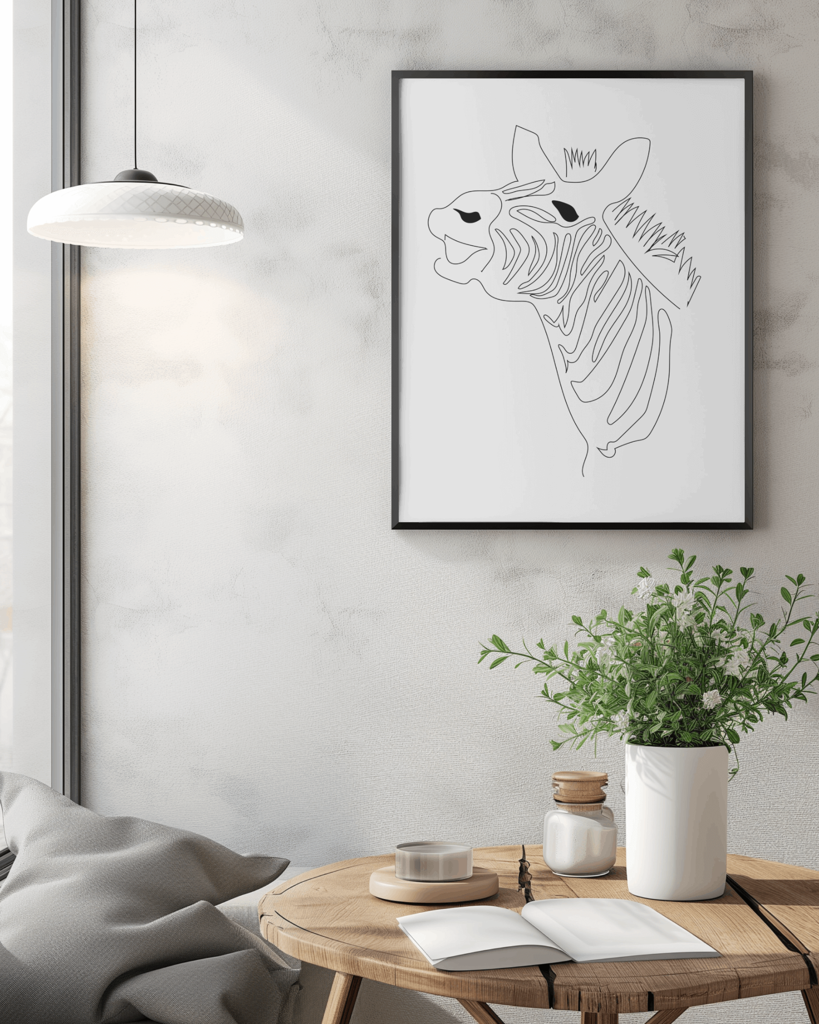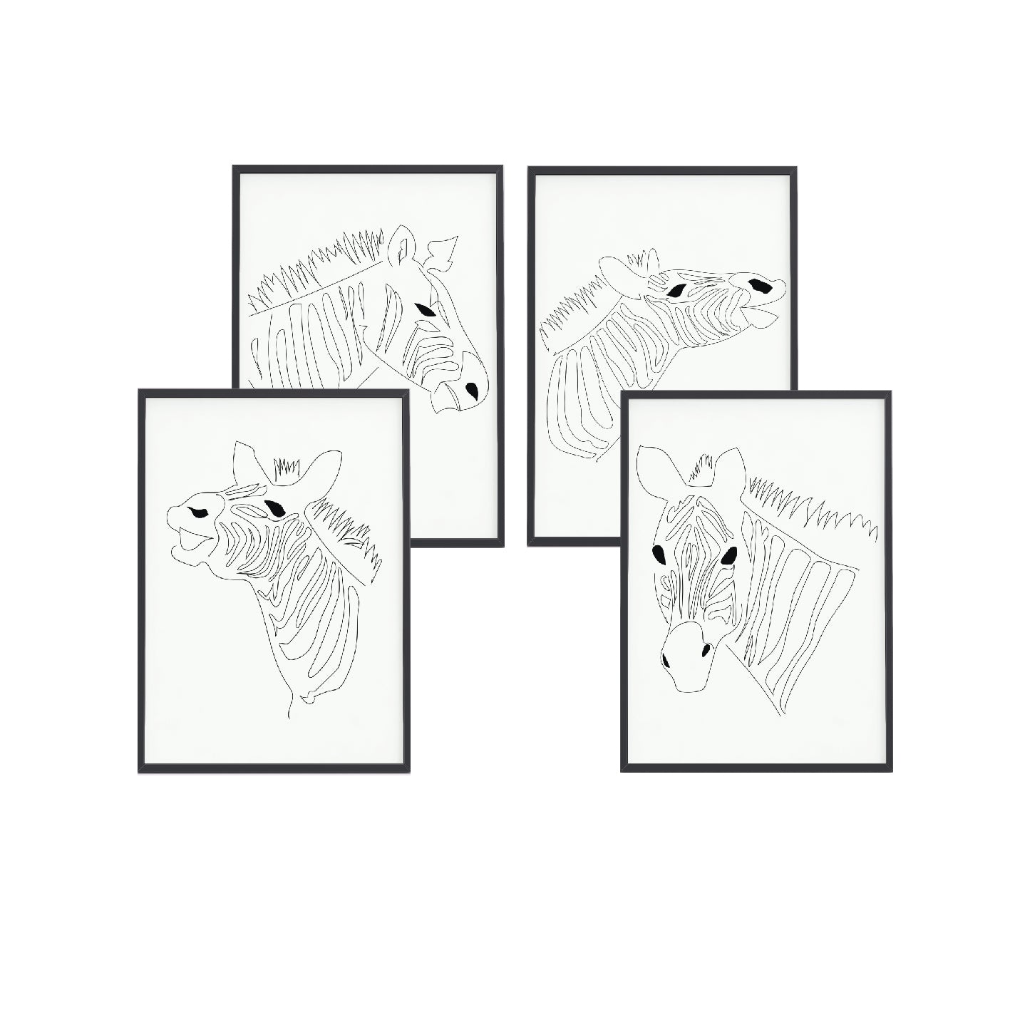 The series consists of four minimal line-art Zebra's; Smiling, Grazing, Neighing and...